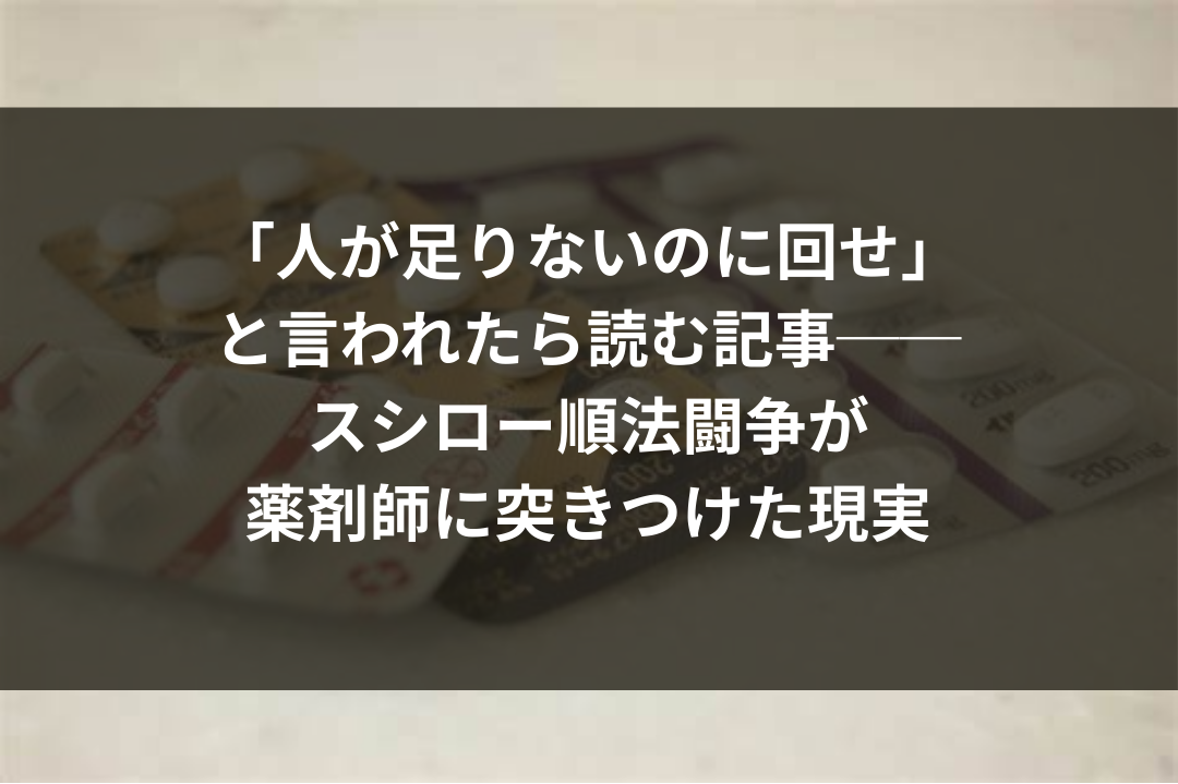 この記事では、労働問題そのものを論じるだけではなく、なぜこうした状況が生まれるのか、そして薬剤師個人が消耗し続けないためにどのような選択肢を持つべきなのかを、現場目線で具体的に解説していきます。