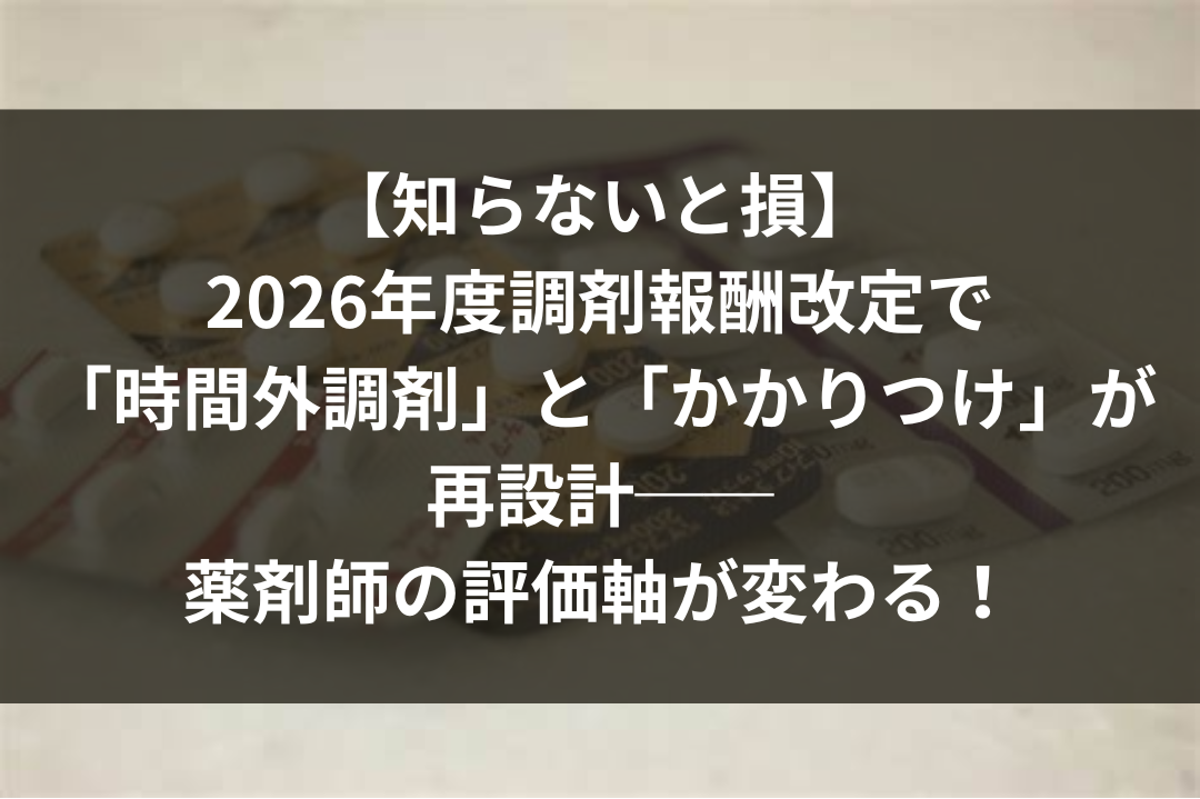 2026年度の改定は、薬剤師のキャリアを二極化させます。