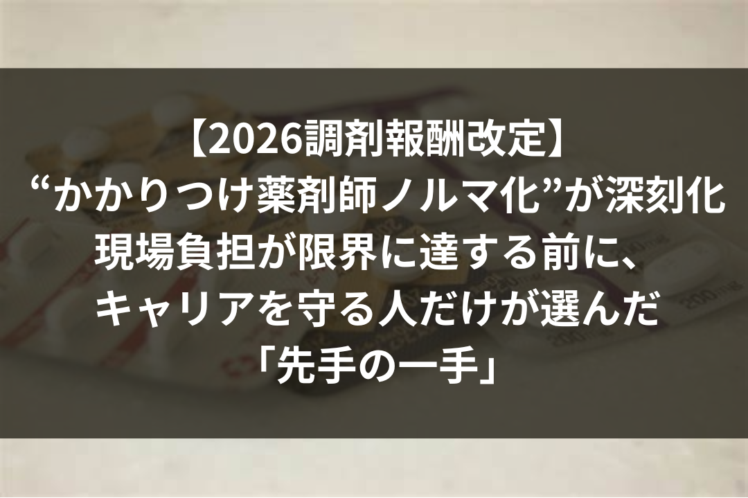 「薬剤師がキャリアを守るためには、どのタイミングで“動く”べきなのか?」