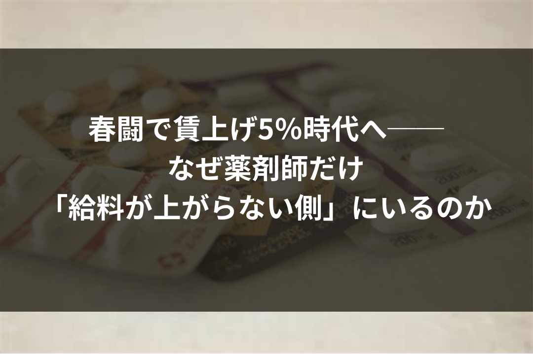 今回取り上げる「春闘」のニュースも、一見すると薬剤師には関係の薄い話題に見えるかもしれません。しかし、日本全体の賃金がどう動くのかを知ることは、自分の仕事の価値を相対的に考えるうえで非常に重要です。世の中が賃上げへ向かう中で、医療業界、とりわけ薬剤師の給与はどのような位置にあるのか。そしてこれから先、どんな選択が現実的なのか。