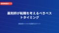 薬局の経営統合・門前薬局のビジネスモデルの変化・調剤報酬改定による収益減少など、勤務先の経営安定性に不安を感じるなら転職タイミングを検討すべきです。経営が悪化してからでは選択肢が狭まることがあります。