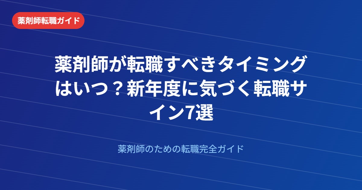 本記事では、薬剤師が転職を真剣に考えるべき7つのサインと、転職活動の最適なタイミング、準備のポイントを徹底的に解説します。「なんとなく転職したいけれど、本当に今のタイミングでいいのか?」という悩みを抱えている方に、具体的な判断基準をお伝えします。