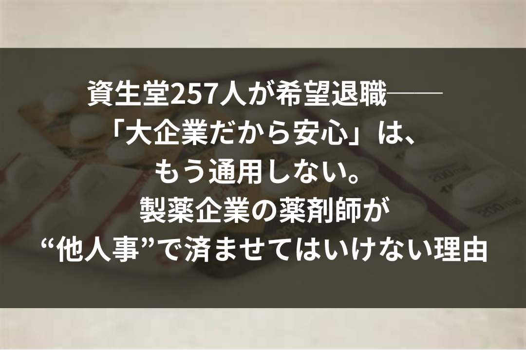 資生堂の希望退職は、「大企業にいれば一生安泰」という考えが、もはや幻想であることを突きつけています。製薬業界も例外ではありません。