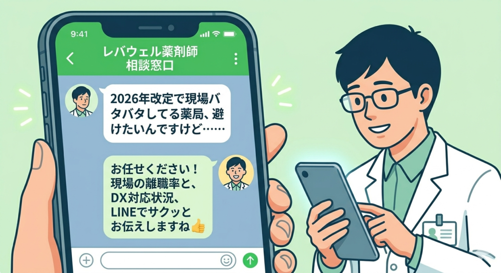 • スマホでサクッと現場のリアルを知りたいなら:[レバウェル薬剤師]