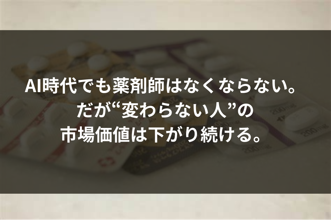 同じ薬剤師でも、AIを活用して付加価値を生み出せる人と、AIの補助に依存するだけの人とでは、評価が大きく分かれるからです。