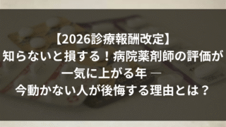 【2026診療報酬改定】知らないと損する!病院薬剤師の評価が一気に上がる年 ― 今動かない人が後悔する理由とは?