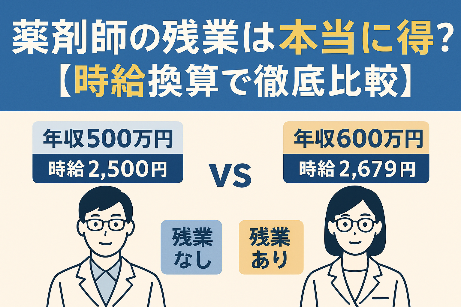 転職・キャリア設計 薬剤師は残業で本当に得してる? 時給換算で見ると“意外な損”が明らかに 薬剤師の収入は残業ありと残業なしでどれだけ差が出る?時給換算で比較し、年収・労働時間・ライフスタイルへの影響を解説。転職や働き方の参考に! 2025.10.04 転職・キャリア設計